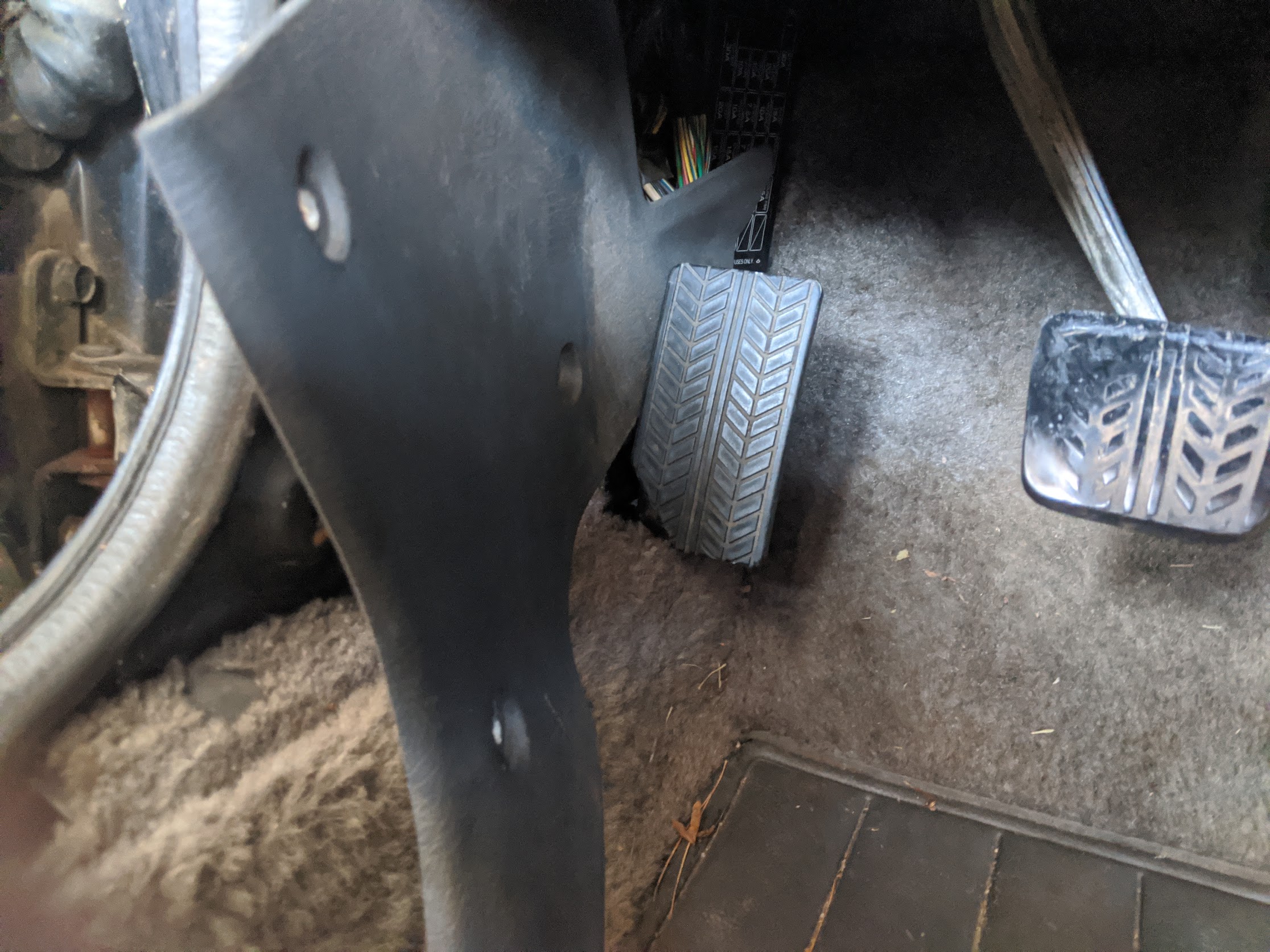 First, remove the door jam (held in by screws). The kick panel is held in by three Christmas tree fasteners. These are a pain to get out. I basically just grabbed it with needle nose pliers and pulled hard.