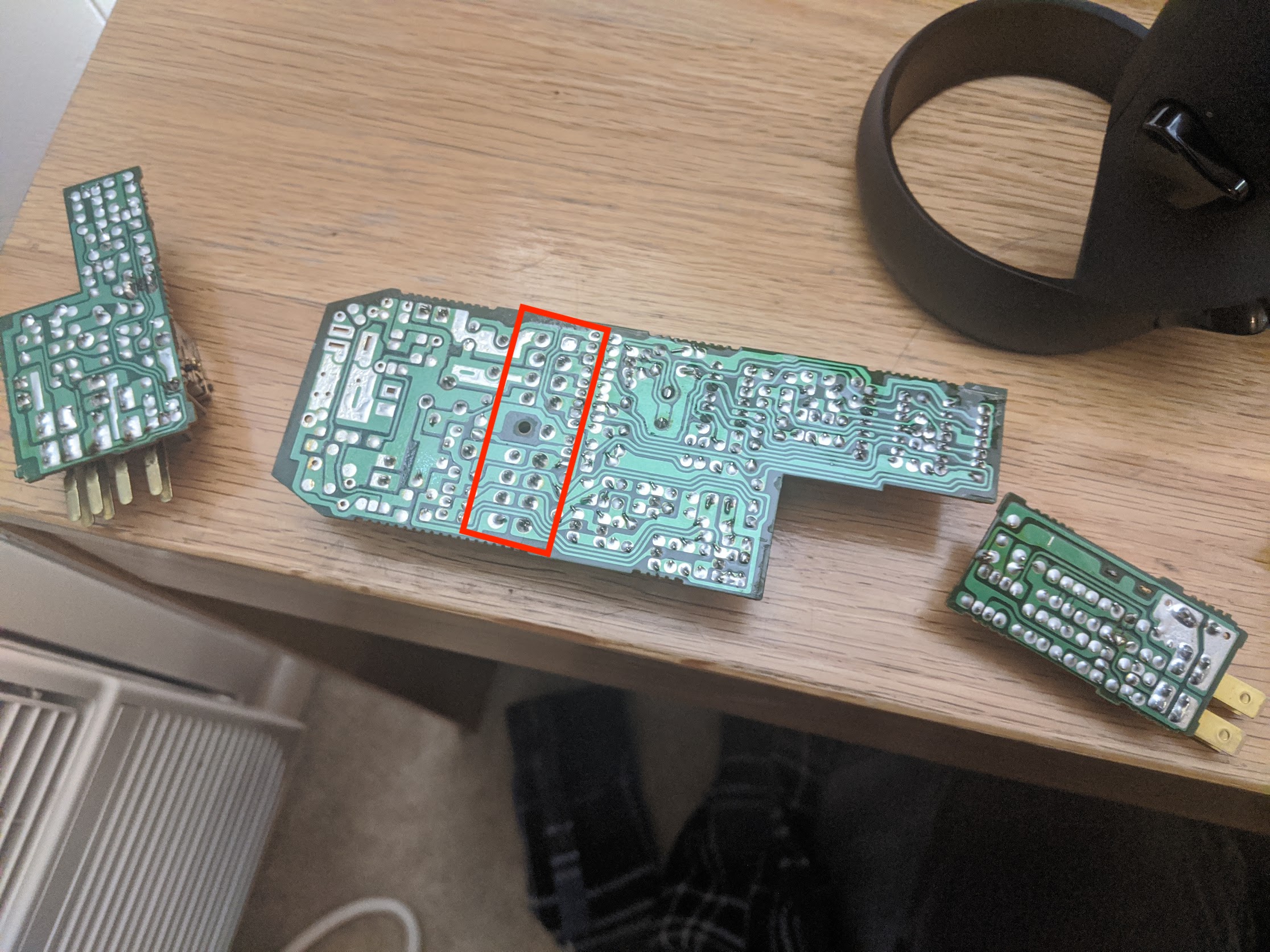 The main thing you need to look for is broken solder joints. 90% of the time, these are at the pins connecting the board to the car (outlined in red). Take a magnifying glass and look around all the joints on the board. If they are exceptionally dull, they are probably cold and might not be making good contact. If it has cracks around it, that means its broken.