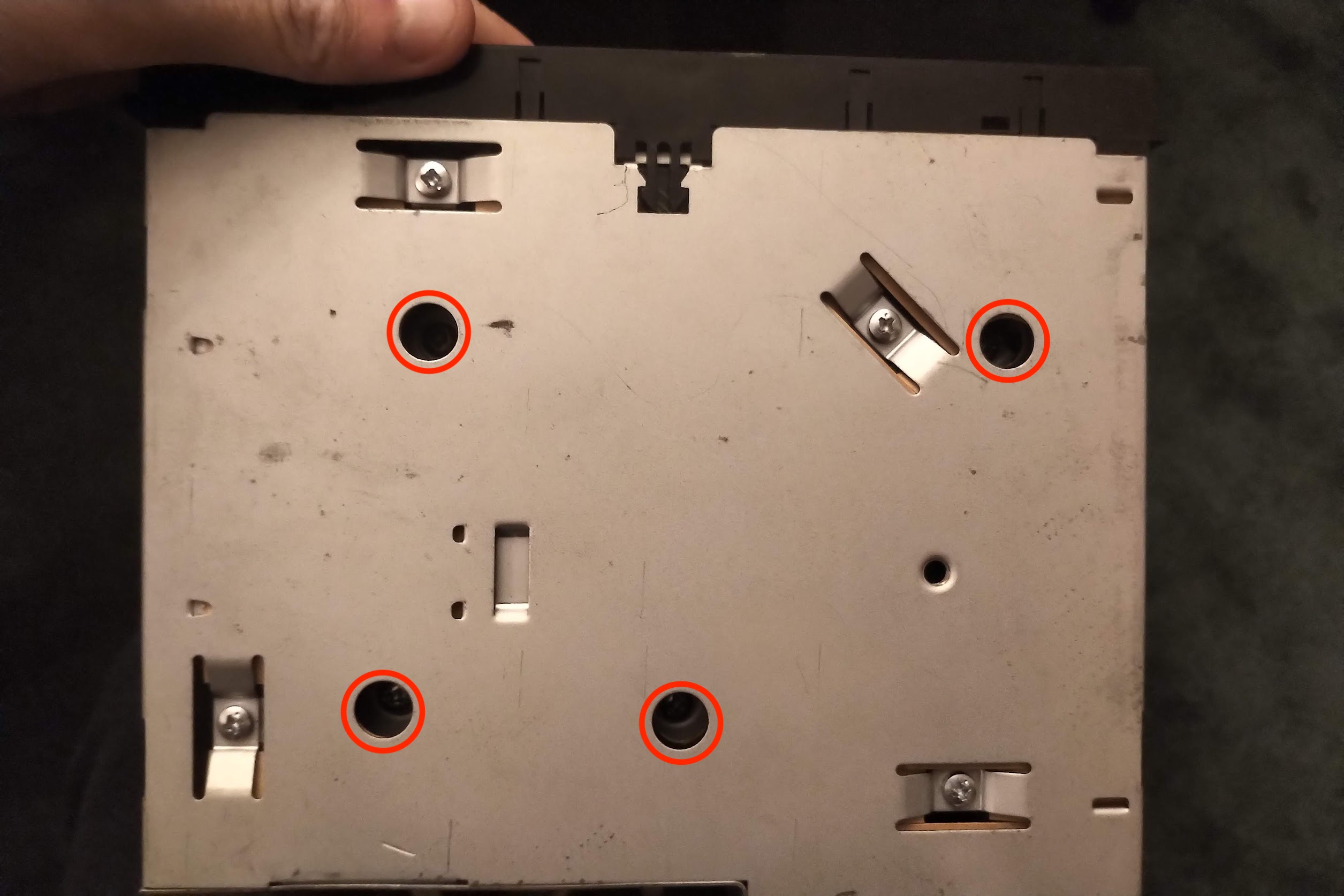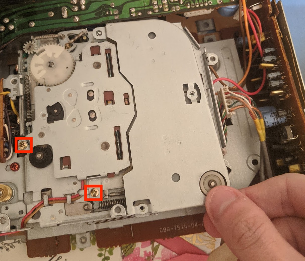Lovely! Now, turn over the cassette deck and remove the recessed screws highlighted.