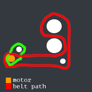 Now for the larger belt. This one is pretty self explanatory. Make it go across the red path listed in the diagram.